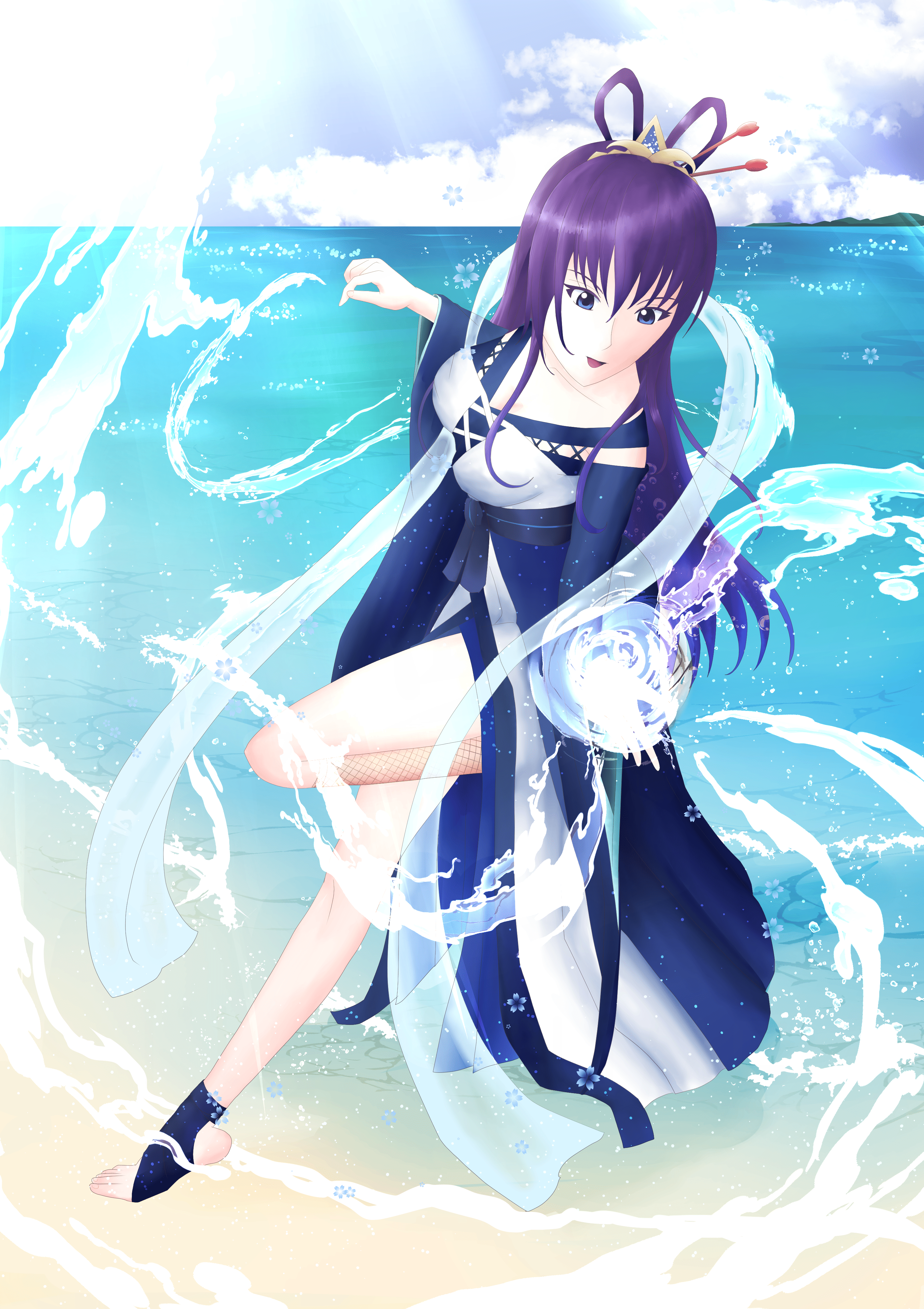 自然界のマナを水の精霊の力で凝縮し纏った姿。流水の力を宿すこの衣は敵の攻撃をいなしながら戦うことを得意とし変幻自在な水の動きで翻弄する。雨の時には力を使いやすくなるようだ。