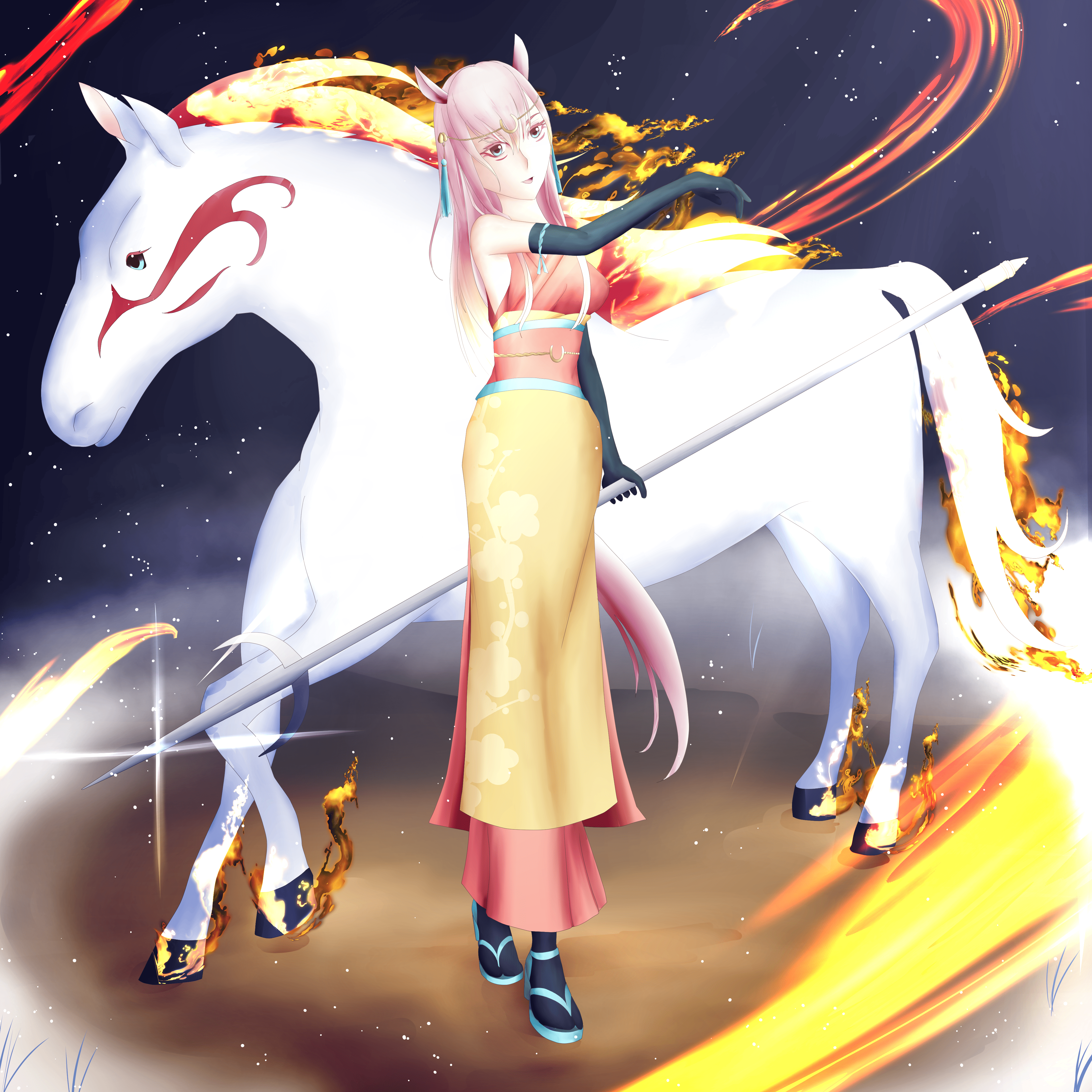 午年うまどしを象徴する馬神うまがみ。強い火の力を宿し、その脚力を活かし他の神々の神器を預かり運ぶ役目を担になう事もある。ポジティブな性格であるが為ため、能転気に見られる事も・・・。
