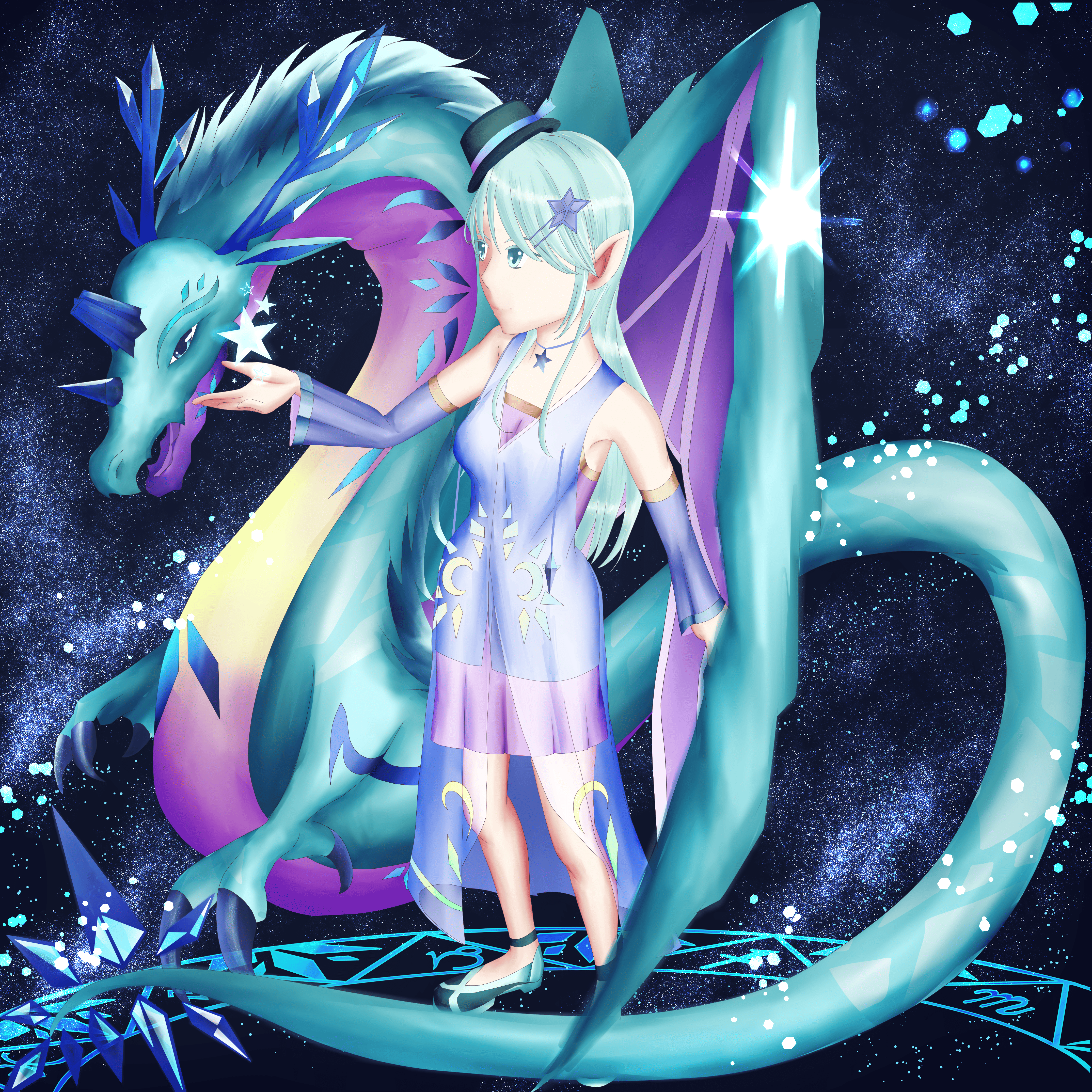 普段は何光年も離れた空の上にいる住んでいると言われている星の精霊、星龍「シュテルン」と共に空をかけると流れ星が流れるという。彼女の怒りに触れるものには頭上に流星群が降り注ぐ。