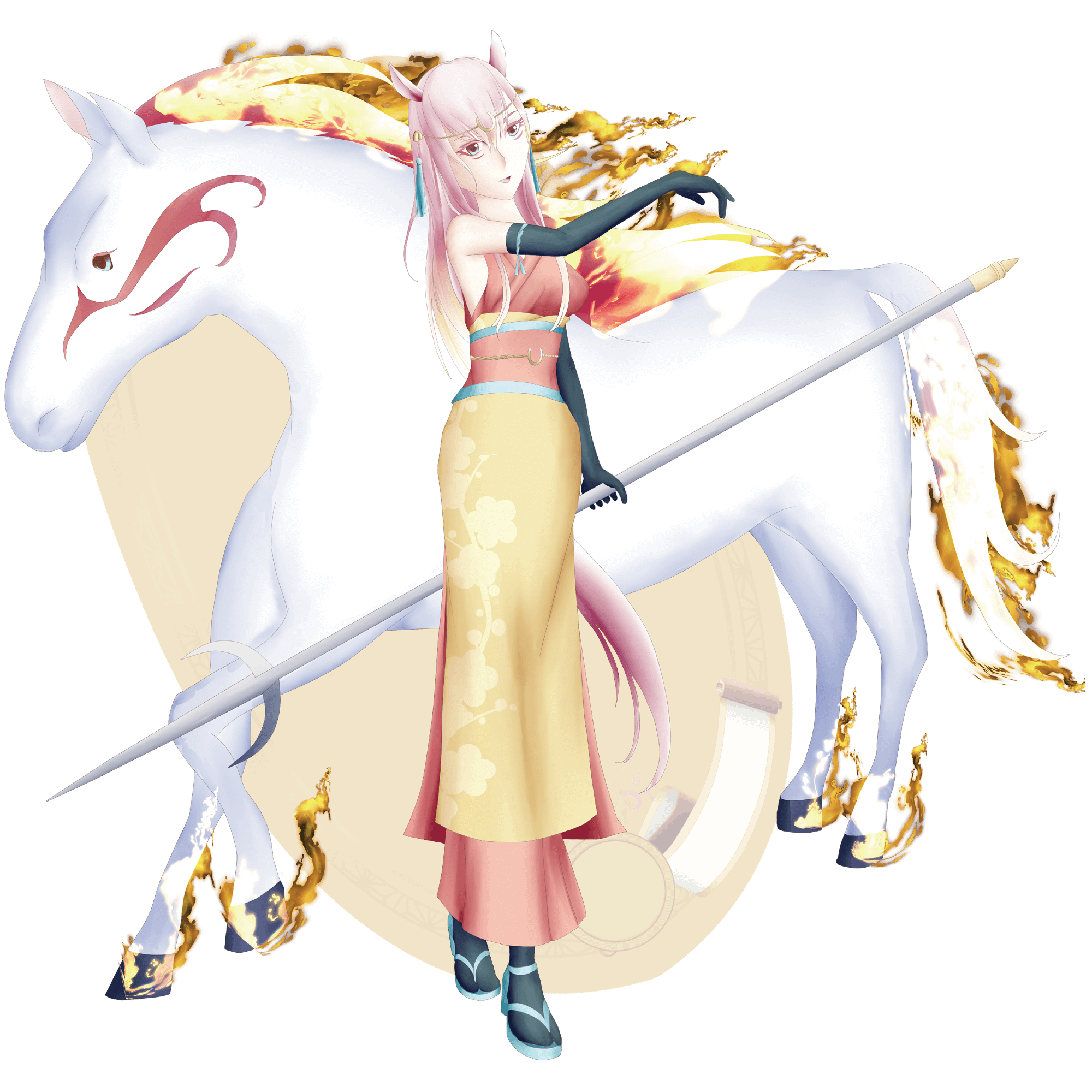 午年うまどしを象徴する馬神うまがみ。強い火の力を宿し、その脚力を活かし他の神々の神器を預かり運ぶ役目を担になう事もある。ポジティブな性格であるが為ため、能転気に見られる事も・・・。